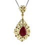 Kök yakut ve dumanlı kuvars 14 ayar altın kolye (40 cm gümüş rolo zincir)