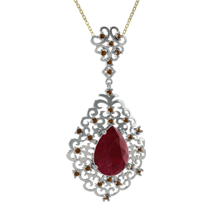 Kök yakut ve dumanlı kuvars 18 ayar beyaz altın kolye (40 cm altın rolo zincir)