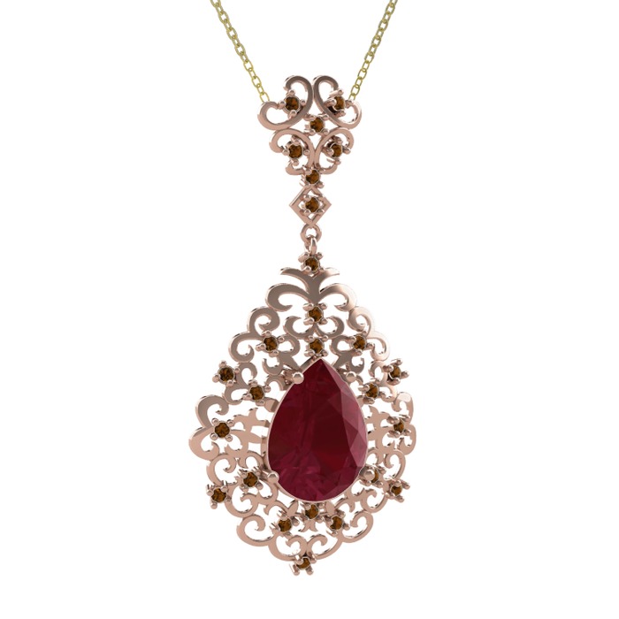 Kök yakut ve dumanlı kuvars 8 ayar rose altın kolye (40 cm gümüş rolo zincir)