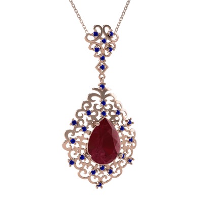 Kök yakut ve lab safir 8 ayar rose altın kolye (40 cm rose altın rolo zincir)