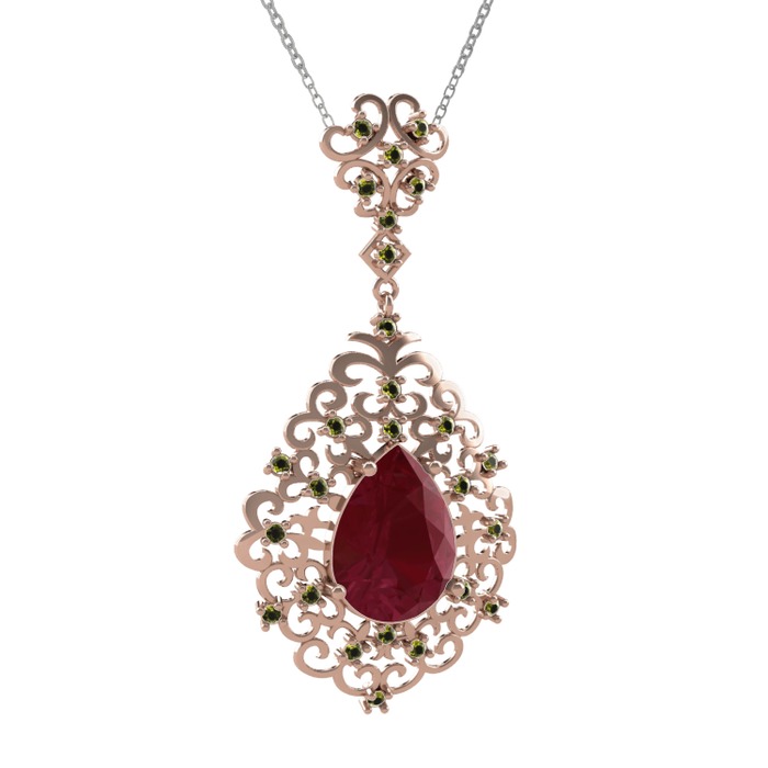 Kök yakut ve peridot 14 ayar rose altın kolye (40 cm beyaz altın rolo zincir)
