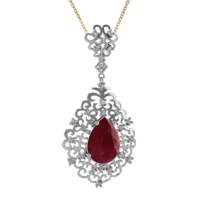 Kök yakut ve pırlanta 925 ayar gümüş kolye (0.52 karat, 40 cm altın rolo zincir)