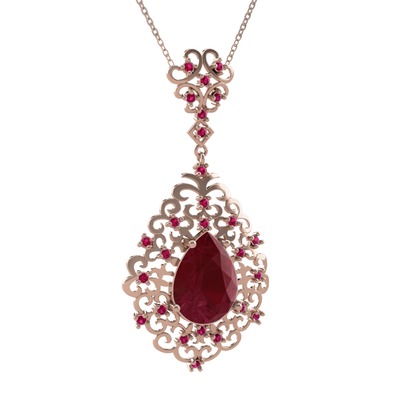 Kök yakut ve rodolit garnet 925 ayar rose altın kaplama gümüş kolye (40 cm rose altın rolo zincir)