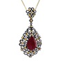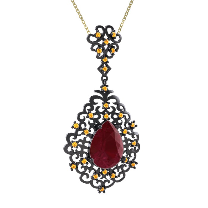 Kök yakut ve sitrin 925 ayar siyah rodyum kaplama gümüş kolye (40 cm altın rolo zincir)