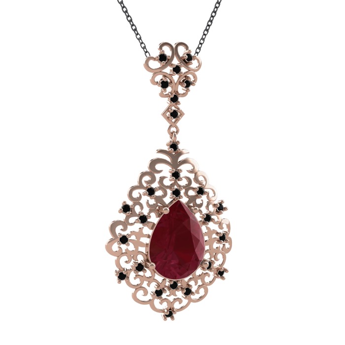 Kök yakut ve siyah zirkon 14 ayar rose altın kolye (40 cm gümüş rolo zincir)