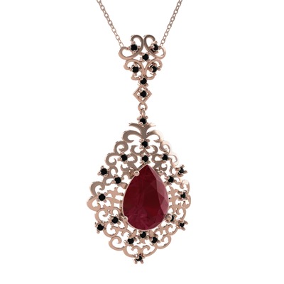 Kök yakut ve siyah zirkon 14 ayar rose altın kolye (40 cm rose altın rolo zincir)