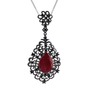 Kök yakut ve siyah zirkon 925 ayar siyah rodyum kaplama gümüş kolye (40 cm gümüş rolo zincir)
