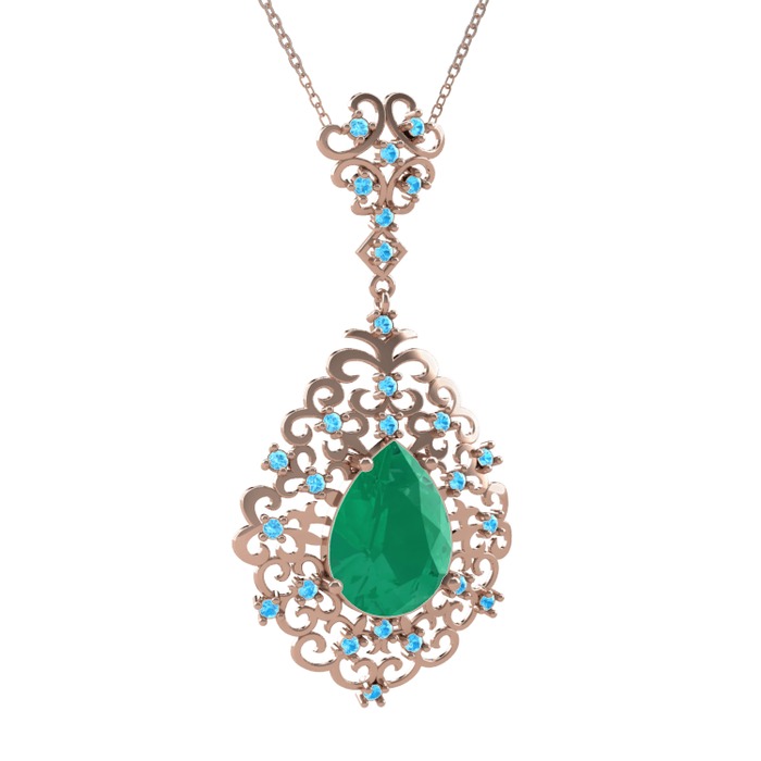 Kök zümrüt ve akuamarin 8 ayar rose altın kolye (40 cm rose altın rolo zincir)