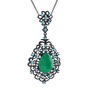 Kök zümrüt ve akuamarin 925 ayar siyah rodyum kaplama gümüş kolye (40 cm gümüş rolo zincir)