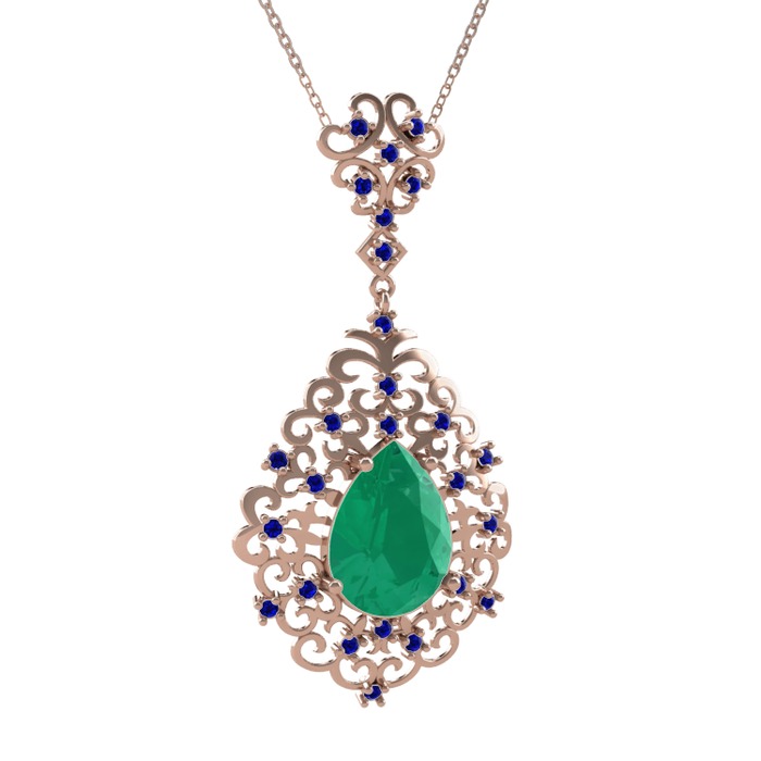 Kök zümrüt ve lab safir 18 ayar rose altın kolye (40 cm gümüş rolo zincir)