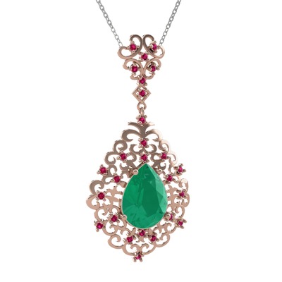 Kök zümrüt ve rodolit garnet 8 ayar rose altın kolye (40 cm beyaz altın rolo zincir)