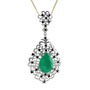 Kök zümrüt ve siyah zirkon 18 ayar beyaz altın kolye (40 cm altın rolo zincir)