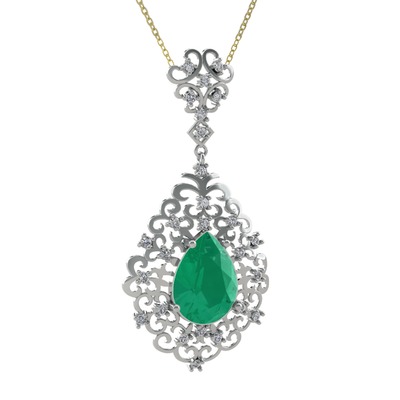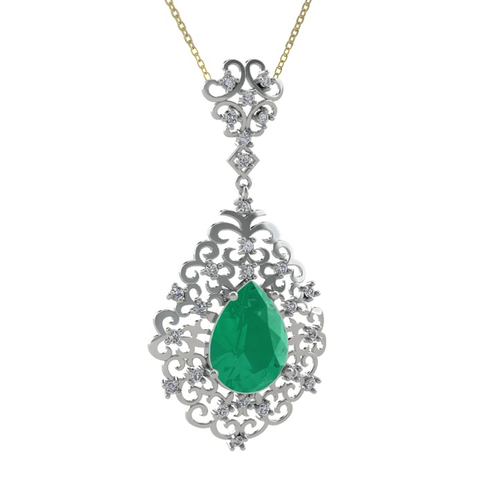 Kök zümrüt ve swarovski 18 ayar beyaz altın kolye (40 cm altın rolo zincir)