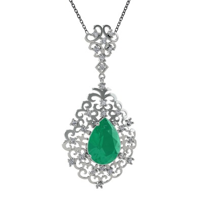 Kök zümrüt ve swarovski 8 ayar beyaz altın kolye (40 cm gümüş rolo zincir)