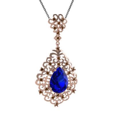 Lab safir ve dumanlı kuvars 18 ayar rose altın kolye (40 cm gümüş rolo zincir)