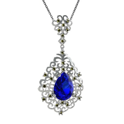 Lab safir ve peridot 14 ayar beyaz altın kolye (40 cm gümüş rolo zincir)
