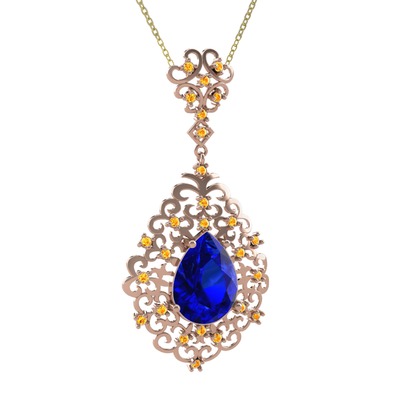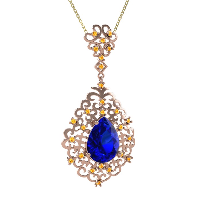Lab safir ve sitrin 18 ayar rose altın kolye (40 cm gümüş rolo zincir)