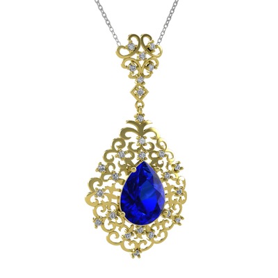 Lab safir ve swarovski 14 ayar altın kolye (40 cm beyaz altın rolo zincir)