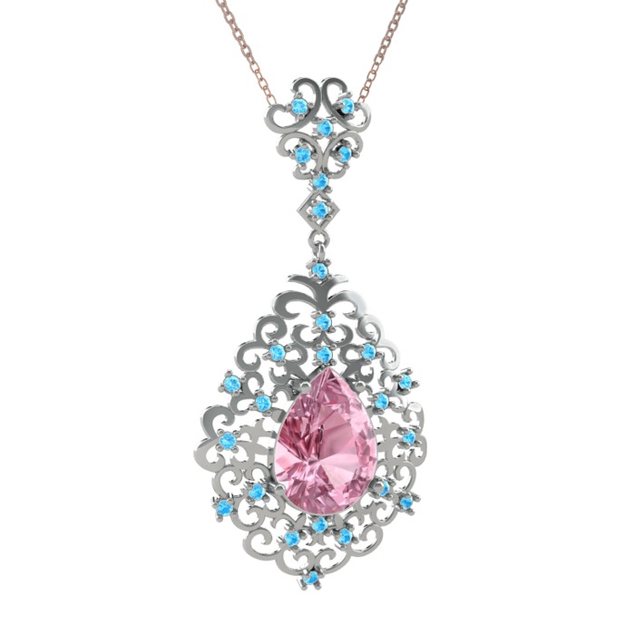Pembe kuvars ve akuamarin 925 ayar gümüş kolye (40 cm rose altın rolo zincir)