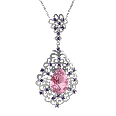 Pembe kuvars ve ametist 14 ayar beyaz altın kolye (40 cm beyaz altın rolo zincir)