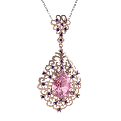 Pembe kuvars ve ametist 18 ayar rose altın kolye (40 cm beyaz altın rolo zincir)