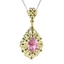 Pembe kuvars ve peridot 18 ayar altın kolye (40 cm beyaz altın rolo zincir)