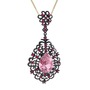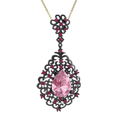 Pembe kuvars ve rodolit garnet 925 ayar siyah rodyum kaplama gümüş kolye (40 cm altın rolo zincir)