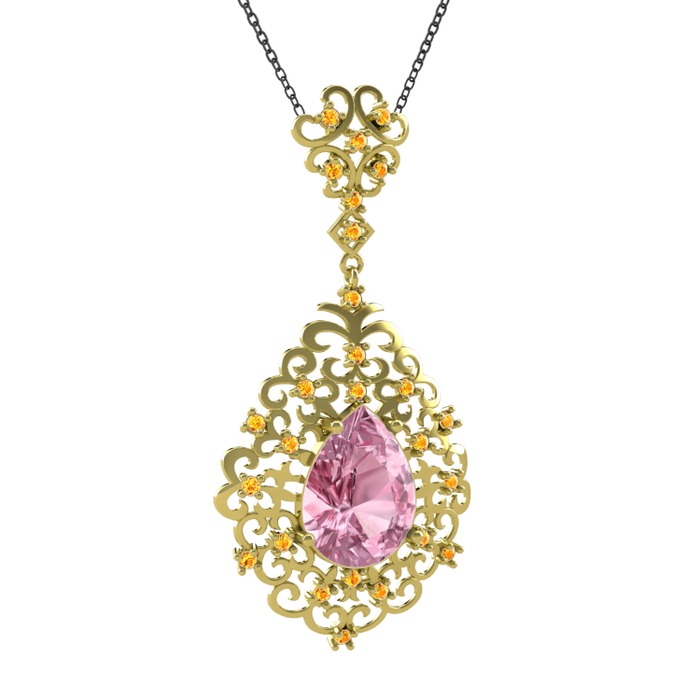 Pembe kuvars ve sitrin 925 ayar altın kaplama gümüş kolye (40 cm gümüş rolo zincir)