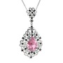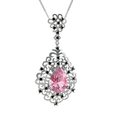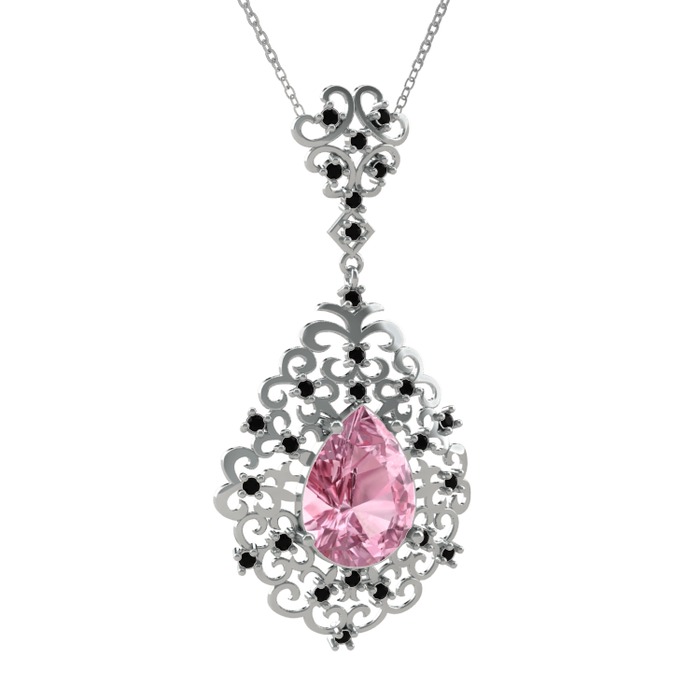Pembe kuvars ve siyah zirkon 14 ayar beyaz altın kolye (40 cm beyaz altın rolo zincir)