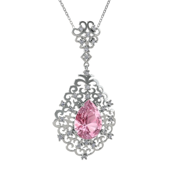 Pembe kuvars ve swarovski 14 ayar beyaz altın kolye (40 cm gümüş rolo zincir)