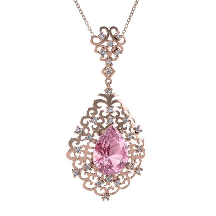Pembe kuvars ve swarovski 925 ayar rose altın kaplama gümüş kolye (40 cm rose altın rolo zincir)