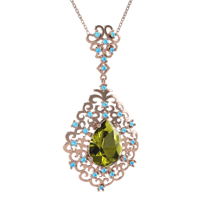 Peridot ve akuamarin 14 ayar rose altın kolye (40 cm rose altın rolo zincir)