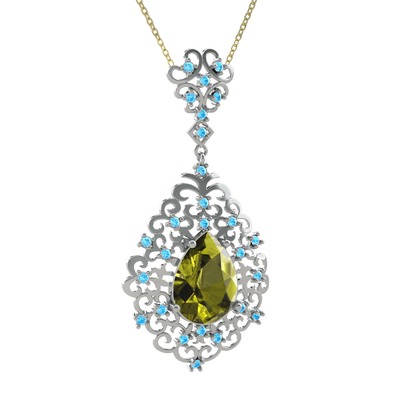 Peridot ve akuamarin 925 ayar gümüş kolye (40 cm altın rolo zincir)