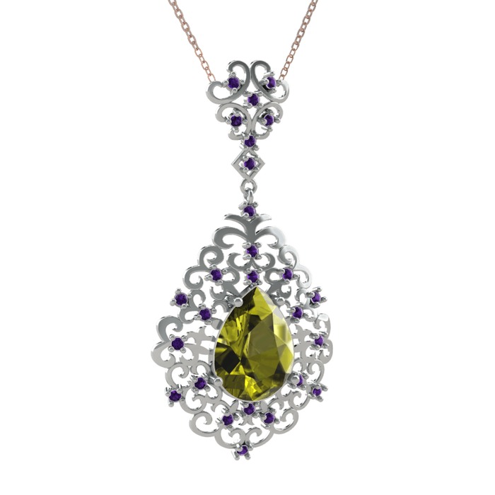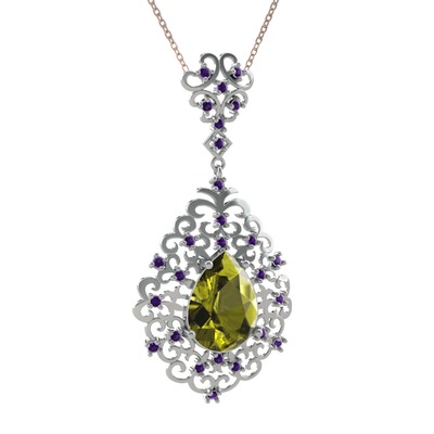 Peridot ve ametist 925 ayar gümüş kolye (40 cm gümüş rolo zincir)