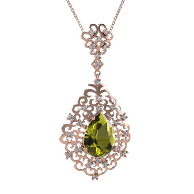 Peridot ve beyaz zirkon 14 ayar rose altın kolye (40 cm rose altın rolo zincir)