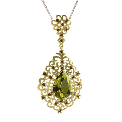 Peridot ve dumanlı kuvars 925 ayar altın kaplama gümüş kolye (40 cm gümüş rolo zincir)