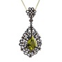 Peridot ve dumanlı kuvars 925 ayar siyah rodyum kaplama gümüş kolye (40 cm altın rolo zincir)
