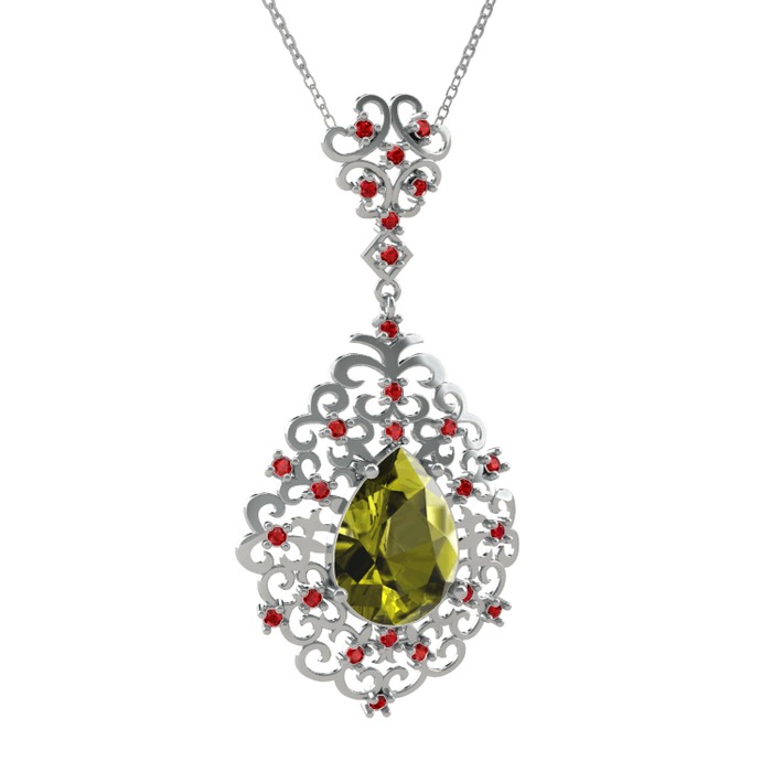 Peridot ve garnet 925 ayar gümüş kolye (40 cm gümüş rolo zincir)