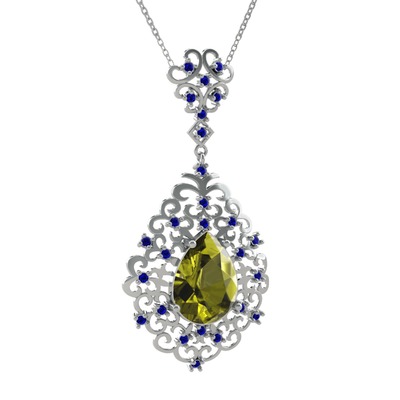 Peridot ve lab safir 8 ayar beyaz altın kolye (40 cm beyaz altın rolo zincir)