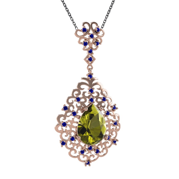 Peridot ve lab safir 925 ayar rose altın kaplama gümüş kolye (40 cm gümüş rolo zincir)