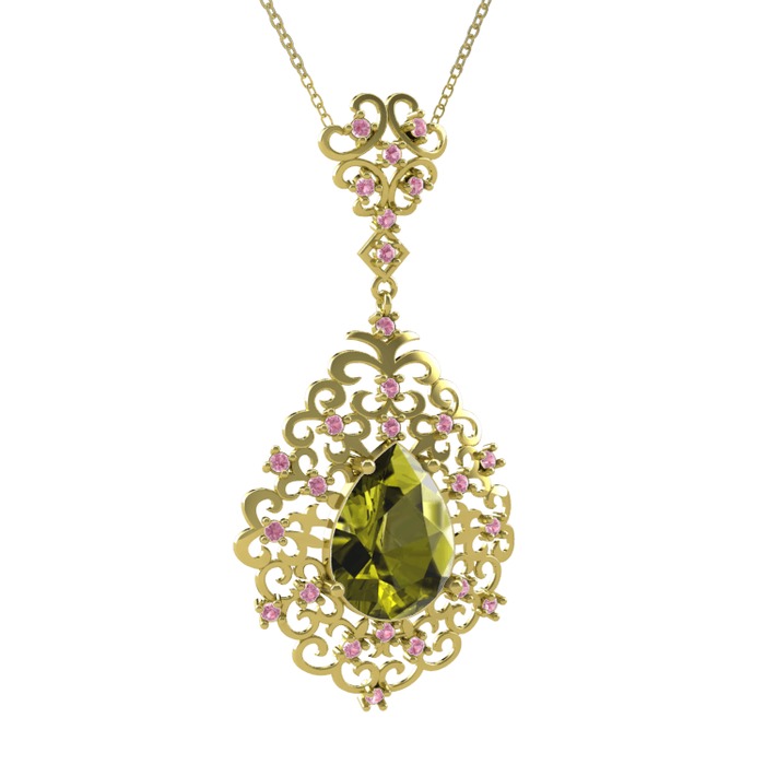 Peridot ve pembe kuvars 8 ayar altın kolye (40 cm altın rolo zincir)