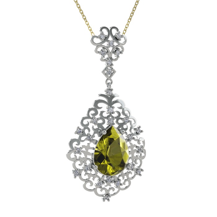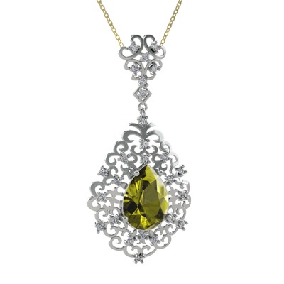 Peridot ve pırlanta 8 ayar beyaz altın kolye (0.52 karat, 40 cm altın rolo zincir)