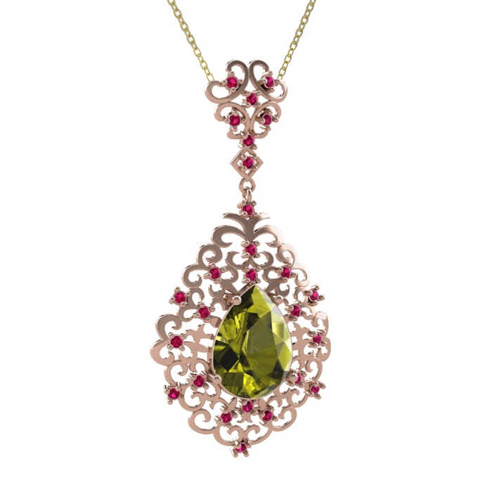 Peridot ve rodolit garnet 14 ayar rose altın kolye (40 cm altın rolo zincir)