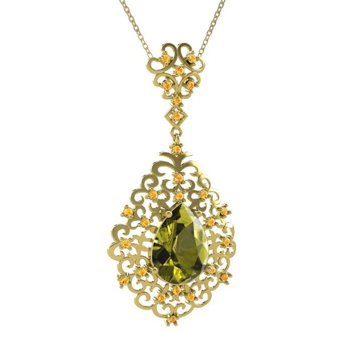 Peridot ve sitrin 925 ayar altın kaplama gümüş kolye (40 cm altın rolo zincir)