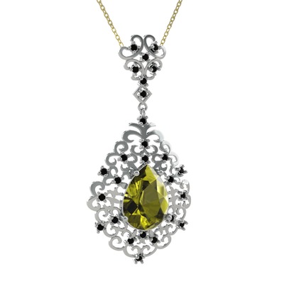 Peridot ve siyah zirkon 18 ayar beyaz altın kolye (40 cm altın rolo zincir)