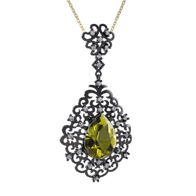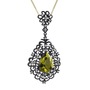 Peridot ve swarovski 925 ayar siyah rodyum kaplama gümüş kolye (40 cm altın rolo zincir)