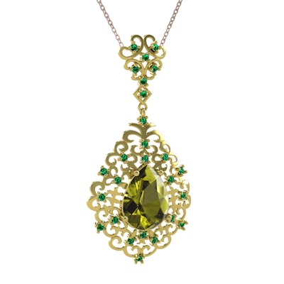 Peridot ve yeşil kuvars 8 ayar altın kolye (40 cm rose altın rolo zincir)