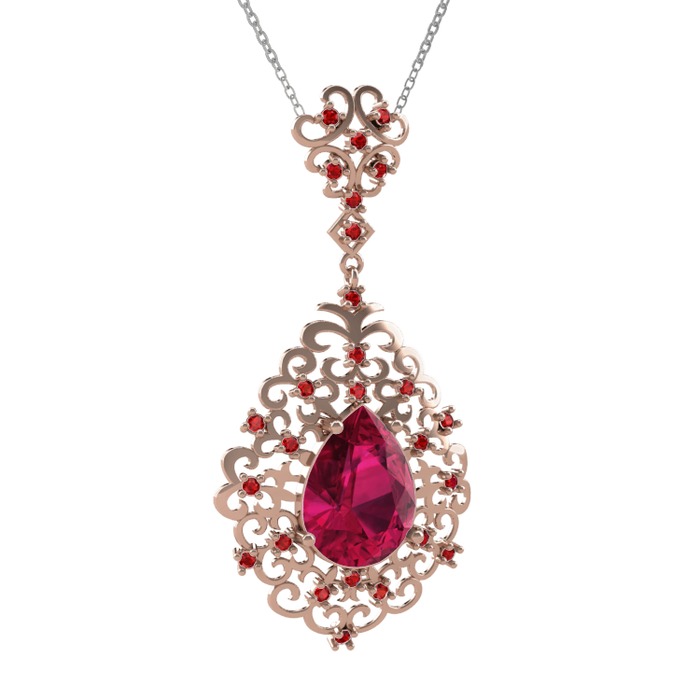 Rodolit garnet ve garnet 8 ayar rose altın kolye (40 cm gümüş rolo zincir)