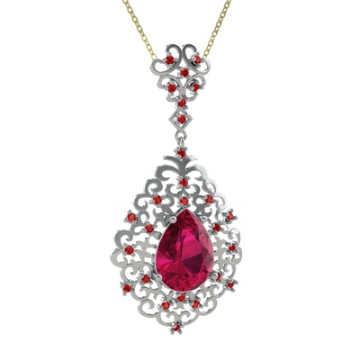 Rodolit garnet ve garnet 925 ayar gümüş kolye (40 cm altın rolo zincir)