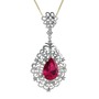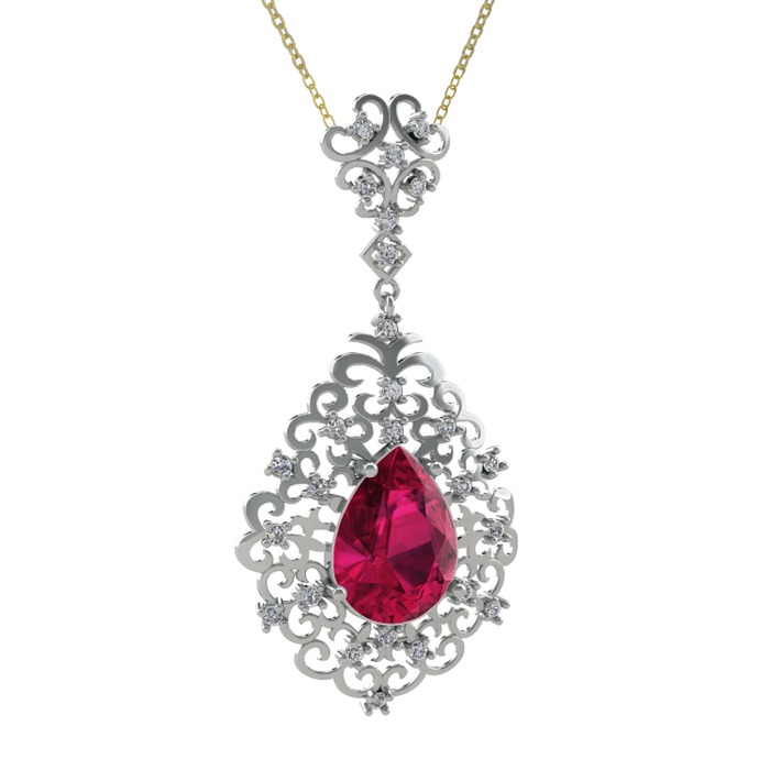 Rodolit garnet ve pırlanta 8 ayar beyaz altın kolye (0.52 karat, 40 cm altın rolo zincir)